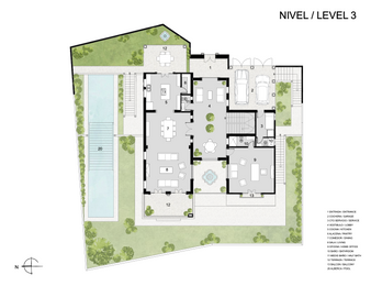 The third floor features an open foyer for entertaining, a chef's kitchen with an island, a dining area, and a living room opening to a balcony with stunning views of La Parroquia. It also includes a secondary living and dining area, plus a room with a full bathroom and balcony, perfect for a home office. The second level has two rooms with high ceilings, private bathrooms, and balconies with sunset panoramas. An open foyer with a terrace and cantera fountain connects these rooms. There's also a room with a walk-in closet and private bathroom, ideal for a fitness room with pool access. The first level includes a master suite, foyer, and game room with a private bathtub. The pool, a highlight of Puesta del Sol, connects the third and first levels, with a waterfall cascading from the second level. Handcrafted by local artisans, every detail ensures quality and authenticity. Located in a gated community, Puesta del Sol offers exclusivity and security.